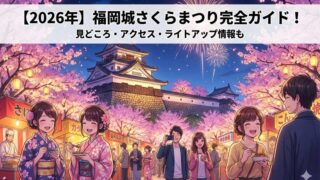 2026年「福岡城さくらまつり」の最新ガイド!開催日程やライトアップ時間、屋台グルメ、混雑を避ける穴場時間まで徹底解説。歴史ある石垣と約1000本の桜が織りなす絶景を120%楽しむためのアクセス情報やモデルコースもご紹介します。