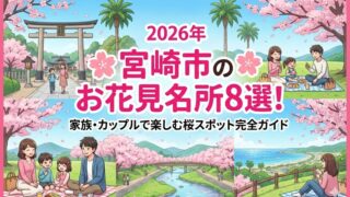 【2026年最新】宮崎市のお花見名所8選!開花予想(3/22〜)や満開時期、平和台公園のライトアップ情報、西都原の菜の花コラボなど、地元ライターが徹底解説。子連れに嬉しい遊具情報やデートに最適な夜桜穴場スポットまで、宮崎の春を満喫する決定版ガイドです。
