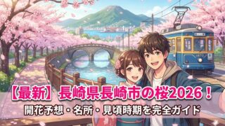 【2026年最新】長崎県長崎市の桜開花予想(3/23頃)と満開時期を徹底解説!立山公園や風頭公園など名所のライトアップ・まつり情報から、地元ライター推奨の穴場スポット、混雑回避の駐車場情報まで網羅。この記事で2026年の春を120%楽しむ準備は万端です!