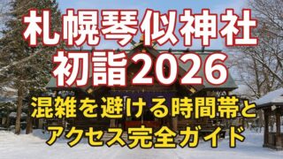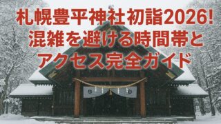 2026年の札幌豊平神社初詣ガイド。混雑を避けるおすすめ時間帯やアクセス方法、御神木やお守り・御朱印情報、さらに幻想的などんど焼き神事まで徹底紹介。雪と光に包まれる札幌の初詣を楽しむ完全ナビ!