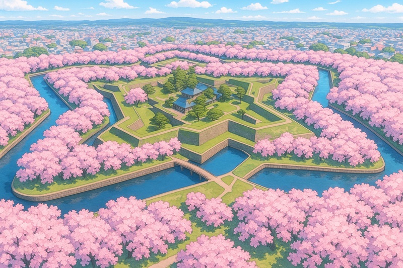 星形の堀、広々とした公園、そして歴史を感じる景観がひとつになっていて、ほかのお花見スポットとは少し違う、特別な空気を味わえます。