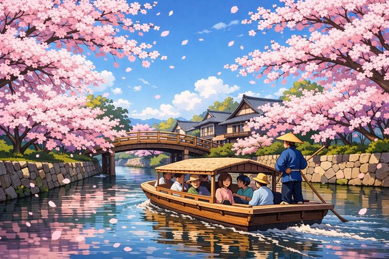 | 10:30 | 堀川遊覧船に乗船 | 混む前に遊覧船を予約し、優雅にお花見。 |