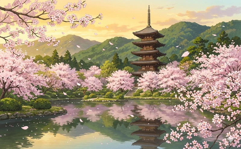 春の光に包まれた五重塔、水面に映る夜桜の幻想的な揺らぎ、そして大切な人と囲む春限定のスイーツ。